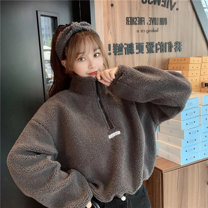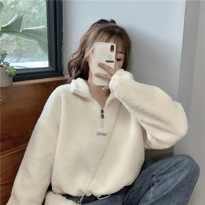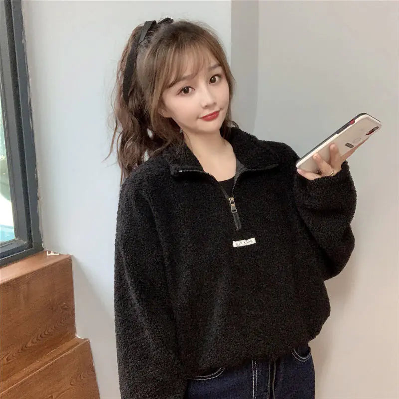 Women's Thickened Lambswool Hoodie - Korean Style Warm Coat